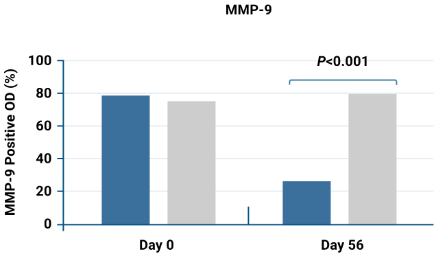 Positive MMP-9 test results decreased from baseline in both eyes for the BlinkTM NutriTears® group and did not decrease for the placebo group.