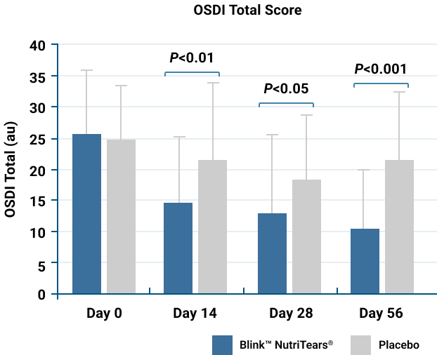 Improvement from baseline in total OSDI scores was significantly better for participants in the BlinkTM NutriTears® group.