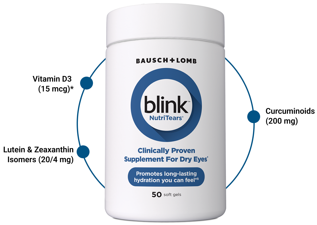 Lutein, zeaxanthin, curcumin, and vitamin D3 have demonstrated protective and anti-inflammatory properties in ocular models. Clinical studies showed that BlinkTM NutriTears® improves symptoms of dry eye disease, reduces inflammatory markers and improves corneal and conjunctival staining.